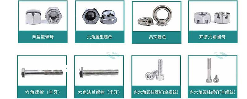 球面墊圈、錐面墊圈、工字鋼用方斜墊圈、槽鋼用方斜墊圈、標準型彈簧墊圈、輕型彈簧墊圈、重型彈簧墊圈、內齒鎖緊墊圈、內鋸齒鎖緊墊圈、外齒鎖緊墊圈、外鋸齒鎖緊墊圈、單耳止動墊圈、雙耳止動墊圈、外舌止動墊圈、圓螺母