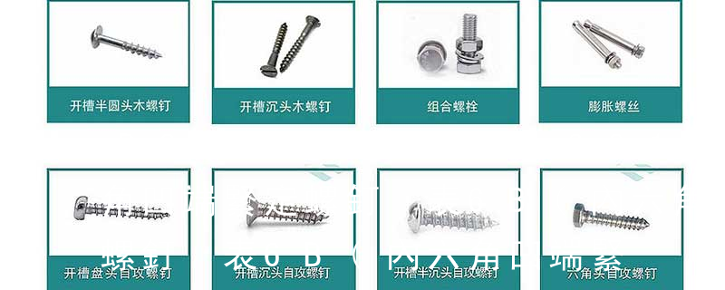 ⑤螺柱類:雙頭螺栓、等長雙頭螺柱(A型B型)、特長雙頭(銅、鐵、鋁、不銹鋼)⑥、緊定螺釘類:內六角平端緊定螺絲、內六角尖端緊定螺絲、內六角凹端緊定螺絲、⑦、銷類:開口銷、圓柱銷、圓椎銷、彈性圓柱銷、銷軸、 緊定螺釘通常由鋼或不銹鋼材料制造,它的端頭形狀有錐形、凹形、平頭形、圓柱形和階梯形等。錐端或凹端緊定螺釘的端頭直接頂緊零件,一般用于安裝后不常拆卸處;平端緊定螺釘的端頭平滑,頂緊后不損傷零件表面,用于需經